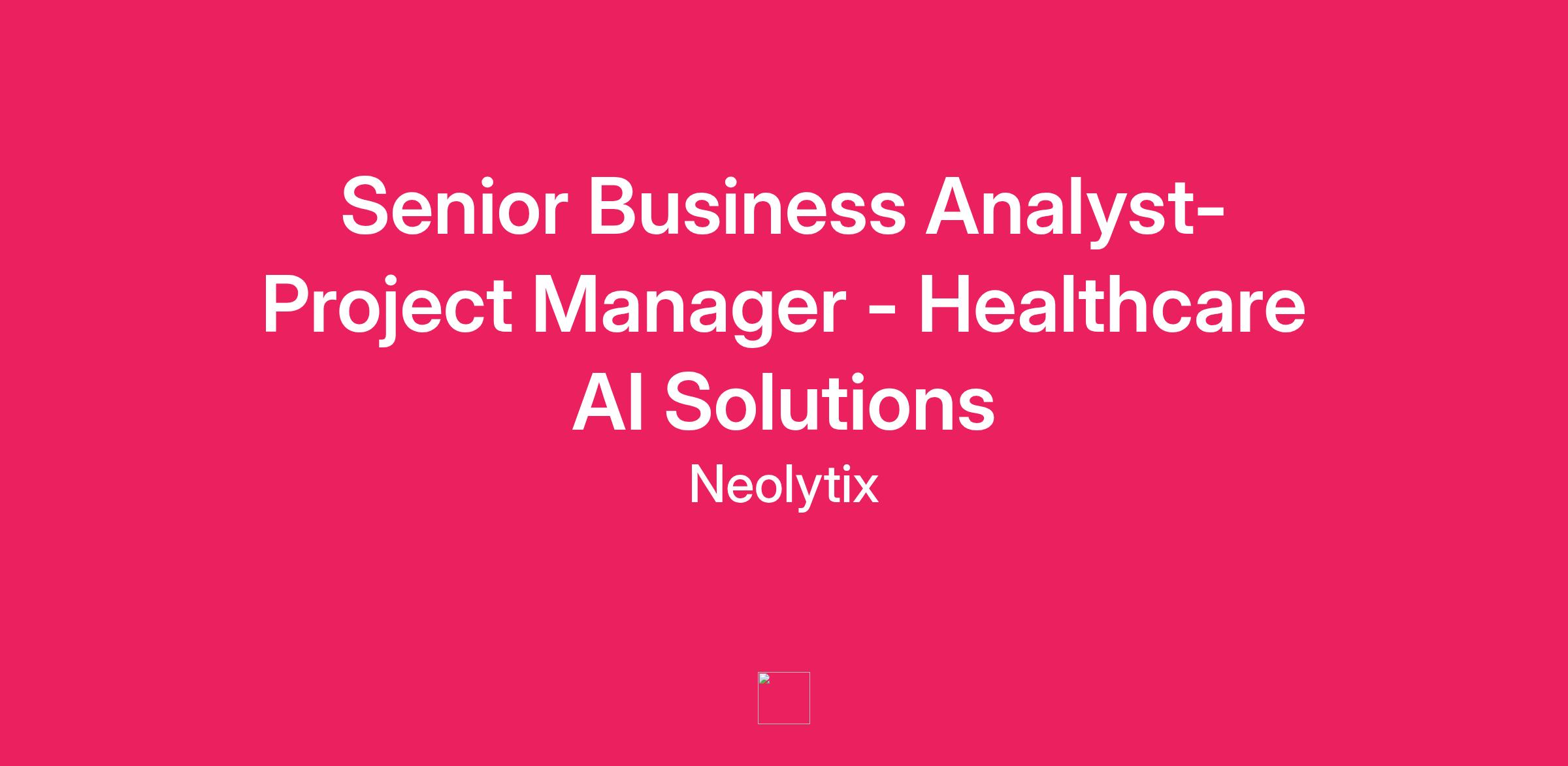 Senior Business Analyst + Project Manager - Healthcare AI Solutions